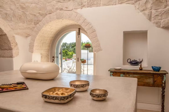Nestled in Puglia's countryside, this rustic home combines a historic Trullo building with a modern annex – accommodating up to six guests. You'll find two double bedrooms with en-suite bathrooms in the Trullo and a convertible twin bedroom in the annex. The property boasts expansive grounds with a private pool and jacuzzi. Enjoy alfresco dinners on the outdoor terrace, and an evening aperitivo in the covered seating area. With a private pool, hot tub, access to the beach, this property really is a wonderful base from which to explore the wonders of the Puglian towns of Cisternino and Martina Franca.